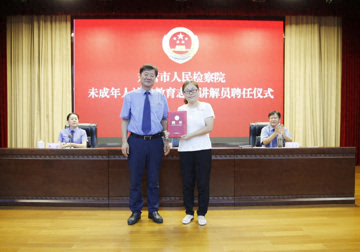 王静的志愿服务,始终围绕着她最熟悉也最牵挂的群体——孩子,她每天早早地抵达学校,指引交通,守护着每一名孩子的安全。同时,作为一名高级教师,她将教育者的专业与志愿者的热忱相结合,深耕未成年人保护领域。除了风雨无阻的“护学岗”,她更被东营市检察院特聘为“未成年人普法教育志愿讲解员”。她将《未成年人保护法》等法律知识融入课堂与课外活动,用孩子们听得懂的语言,点亮他们心中的法治明灯。